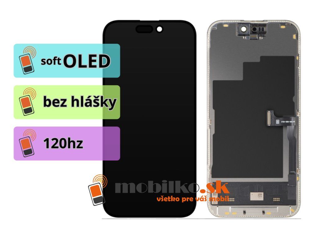 iPhone 15 Pro displej lcd + dotykové sklo - bez chybovej hlášky (120Hz soft OLED) + lepiaca páska pod displej zdarma